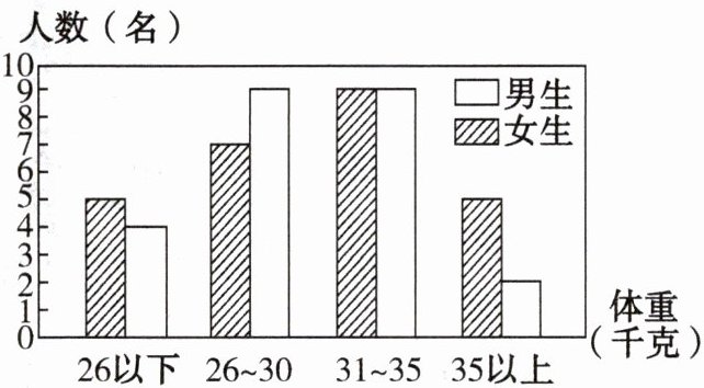 (1)体重在 26 千克以下的有( )名,其中男生有( )名,女生有( )名。