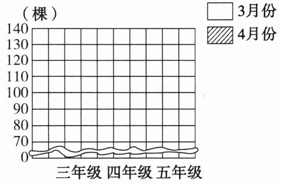 (2)4 月份三个年级共植树( )棵,比 3 月份多植树( )棵。