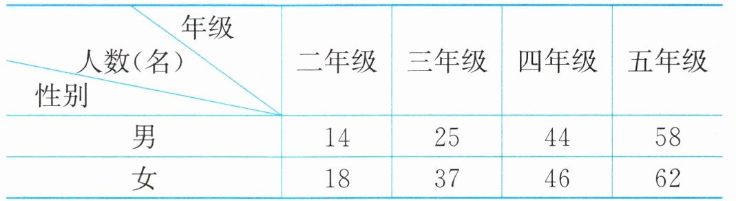 (3)二年级至五年级女生近视总人数比男生近视总人数多多少名?