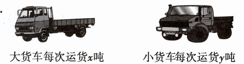 (2) 解析:考查减法的实际运用。大货车每次运货$x$吨,小货车每次运货$y$吨,大货车比小货车多运货$x - y$吨。
