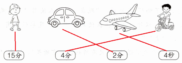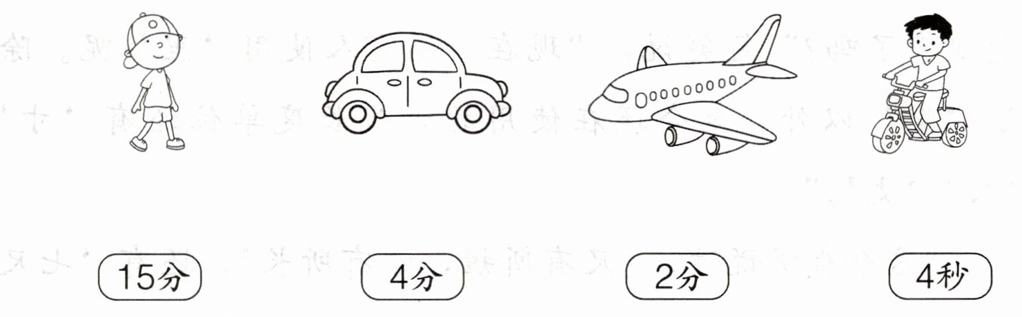 二、根据生活经验,将不同的出行方式和行完 1000 米所需的时间用直线连起来。