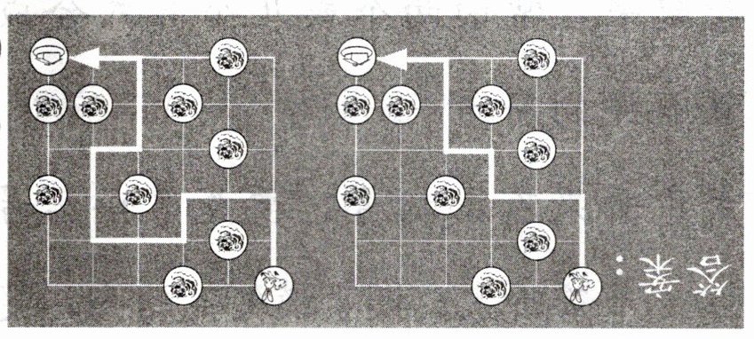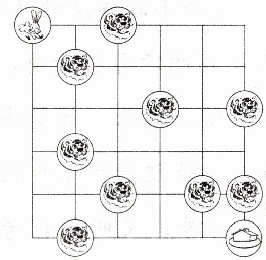 在小白兔回家的路上住着9只大老虎。小白兔回家时千万不能经过大老虎的家,它应该怎样走呢?