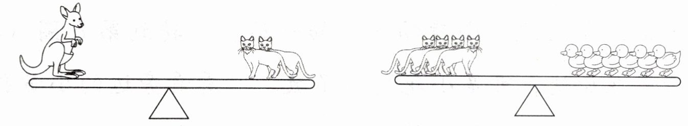 根据下面两幅图,推算出一只袋鼠的重量相当于几只鸭子的重量?
