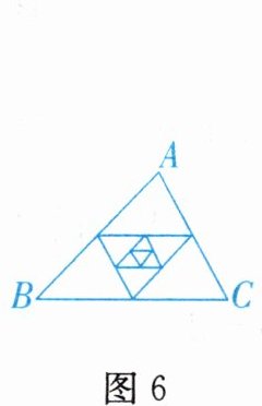 7. 如图6,$\triangle ABC的周长是32$,以它的三边中点为顶点组成第二个三角形,再以第二个三角形的三边中点为顶点组成第三个三角形,……,则第$n$个三角形的周长为