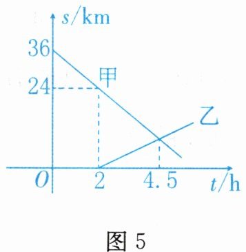 6. 甲、乙两人分别从$A$,$B$两地相向而行,他们距$B地的距离s$(单位:$km$)与时间$t$(单位:$h$)的关系如图5所示,那么乙的速度是______