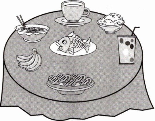 Ⅰ. Look, read and write. 根据餐桌上的食物,补全句子(任选五种食物)。