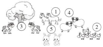 Ⅱ. Listen and number. 听录音,根据所听顺序,用数字 1~5 给下列动物排序。