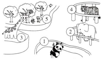Ⅱ. Listen and number. 听录音,根据所听内容的顺序,用数字1~5给图中的动物排序。