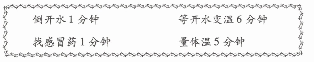 明明的爸爸感冒了,吃完药要赶快休息。明明的爸爸如果合理安排时间,最少需要(