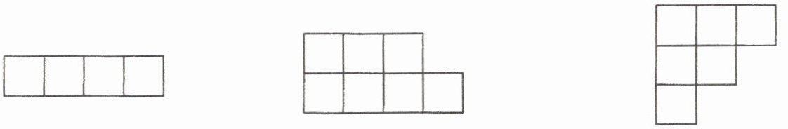 三、下面的图形是用边长为1厘米的小正方形拼成的,它们的周长和面积各是多少?