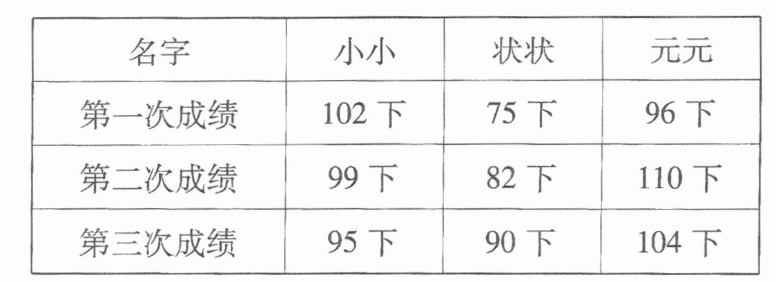 小小、状状和元元三次1分钟跳绳的成绩统计表