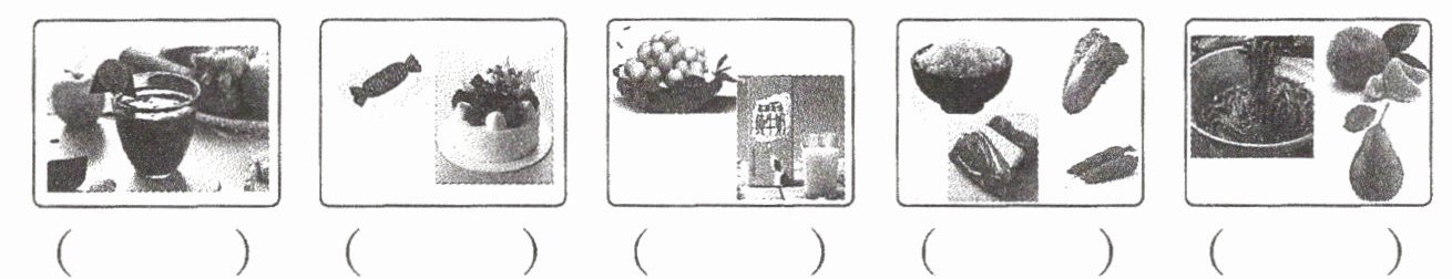 . Candy and cake are yummy, but they are not healthy.任务一:阅读短文,将文中出现的食物按介绍的顺序排列。(有多余图片)
