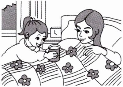周末的早晨,阳光透过窗户洒进房间。妈妈生病了,正躺在床上休息。小女孩看到妈妈身边的水杯空了,心想:妈妈肯定口渴了,我去给妈妈倒杯水。于是,她轻轻地走到桌子旁,拿起水壶,小心翼翼地倒了一杯水,然后端到妈妈床边,轻声说:“妈妈,您喝点水吧,这样病会好得快一些。”妈妈接过水杯,脸上露出欣慰的笑容,说:“宝贝,你真懂事,妈妈爱你。”小女孩听了,心里也暖暖的。