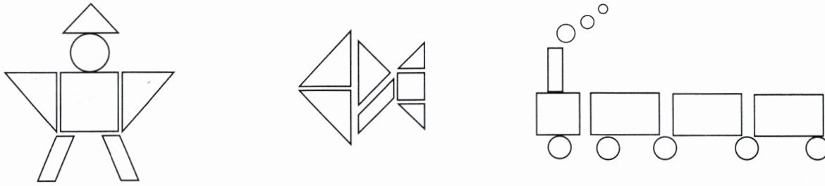 1. 下列物体从上往下看,看到的分别是哪个图形?将相应的图形用线连起来。