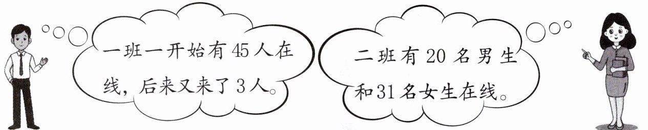 (1)现在一班一共有多少人在线? $□ ◯ □ =□$( )