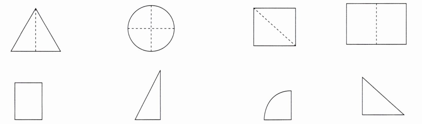 第三个图形(正方形沿对角线虚线)连第四个图形(直角三角形);