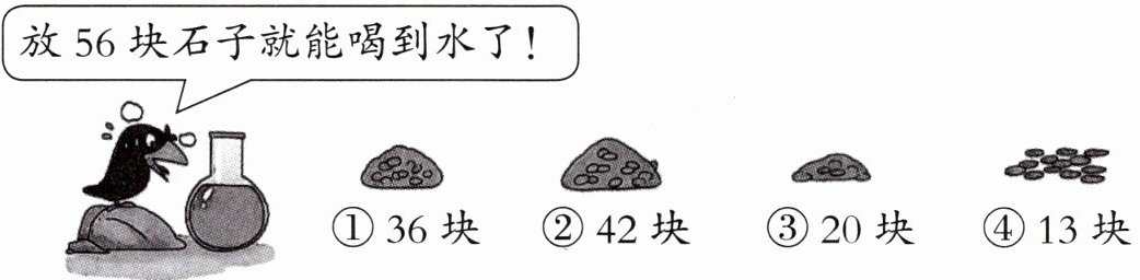 2. 乌鸦为了喝到水,把哪两堆石子放到瓶子里最合适呢?(先算一算,再把两堆石子圈起来)
