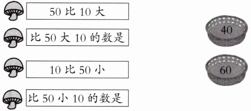 “50比10大”:因为50 - 10 = 40,所以50比10大,应与数字40相连。