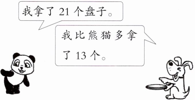 $□ ◯ □ =□$(个) 答:熊猫和小狗一共拿了( )个盘子。