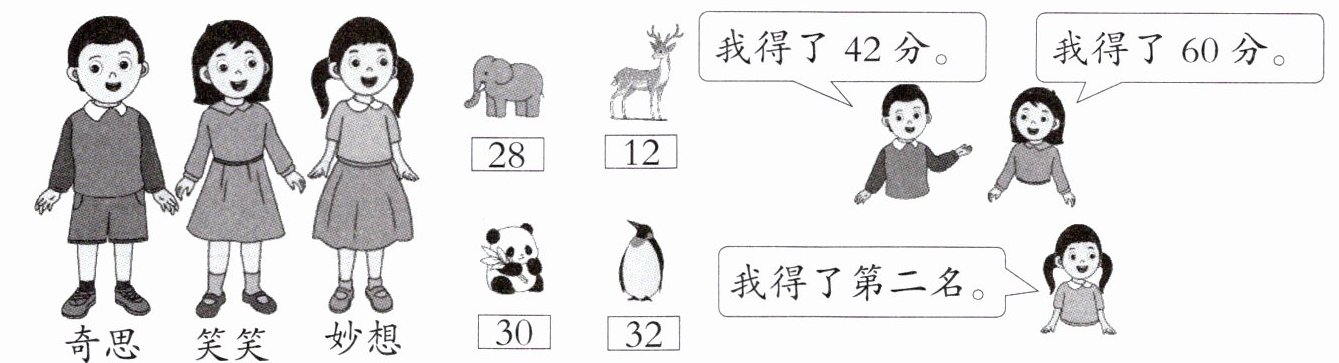 (3)妙想套中的得分可能是( )和( ),也可能是( )和( )。