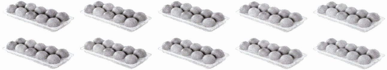 1. 如图,一盒鸡蛋有( )个,有( )盒鸡蛋,一共有( )个鸡蛋。