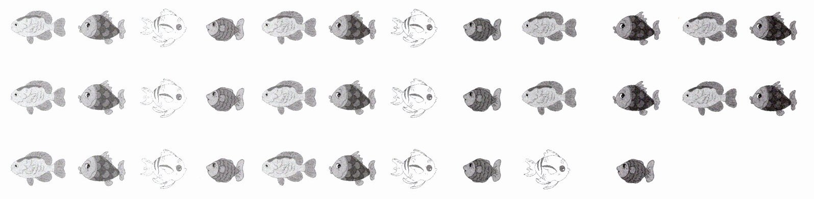 3. 数一数,有( )个十和( )个一,一共有( )条小鱼。