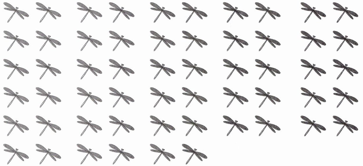 1. 两只两只地数,一共有( )只蜻蜓,蜻蜓的只数比60少( )。
