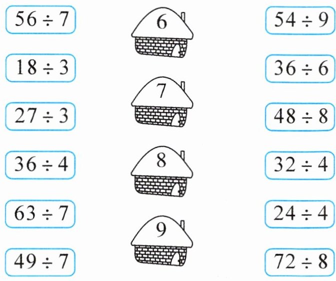 数字9的房子连:$27÷3$;$36÷4$;$63÷7$;$72÷8$。