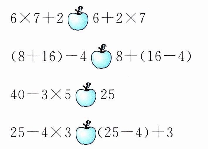 解析:本题考查四则运算的运算顺序。在没有括号的算式里,如果只有加、减法或者只有乘、除法,都要从左往右按顺序计算;如果既有乘、除法又有加、减法,要先算乘除法,后算加减法。在一个算式里,既有小括号,又有中括号,要先算小括号里面的,再算中括号里面的。