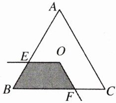 7. 如下图所示,$\angle EOF$的顶点$O$是边长为$2$的等边三角形$ABC$的重心,$\angle EOF$的两边与$\triangle ABC$的边交于$E$,$F$两点,$\angle EOF = 120^{\circ}$,则$\angle EOF$与$\triangle ABC$的边所围成阴影部分的面积是(