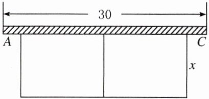 8. 用长为 $ 40m $ 的铁丝围成如下图所示的图形,一边靠墙,墙的长度 $ AC = 30m $,要使靠墙的一边长不小于 $ 25m $,那么与墙垂直的一边长 $ x(m) $ 的取值范围为(
