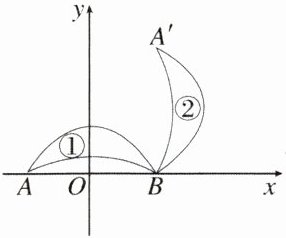 4. 如右图所示,在平面直角坐标系中,点$A$,$B$的坐标分别是$(-2,0)$和$(2,0)$,月牙①绕点$B$按顺时针方向旋转$90^{\circ}$后得到月牙②,则点$A$的对应点$A'$的坐标是 (