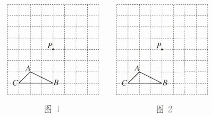 (1) 在图 $1$ 中作 $\triangle A'B'C'$,使其与 $\triangle ABC$ 关于点 $P$ 成中心对称;