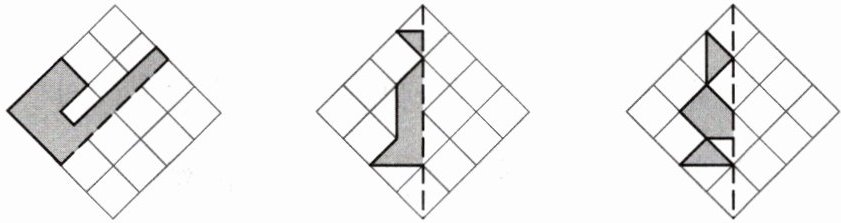 【解析】:根据轴对称图形的性质,对称轴两侧的部分能够完全重合。对于第一个图形,沿着对称轴画出与已有部分对称的图形;第二个图形同理,依据对称轴补全另一半;第三个图形也是按照对称轴的特征补全缺失部分。