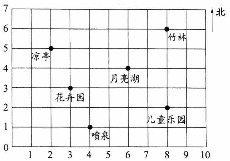 (1)用数对表示月亮湖和竹林的位置。月亮湖(