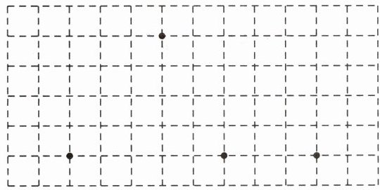 右边的方格图中有 4 个点,从这 4 个点中选 3 个作为顶点,画一个三角形。在画好的三角形中再画一条线段,把它分成两个直角三角形。