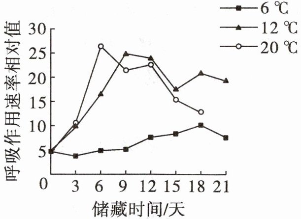 D. 从图中可以看出,在$6^{\circ }C$条件下有利于果实储藏