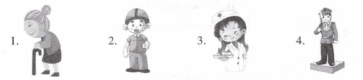 1. grandmother 2. worker 3. nurse 4. policeman