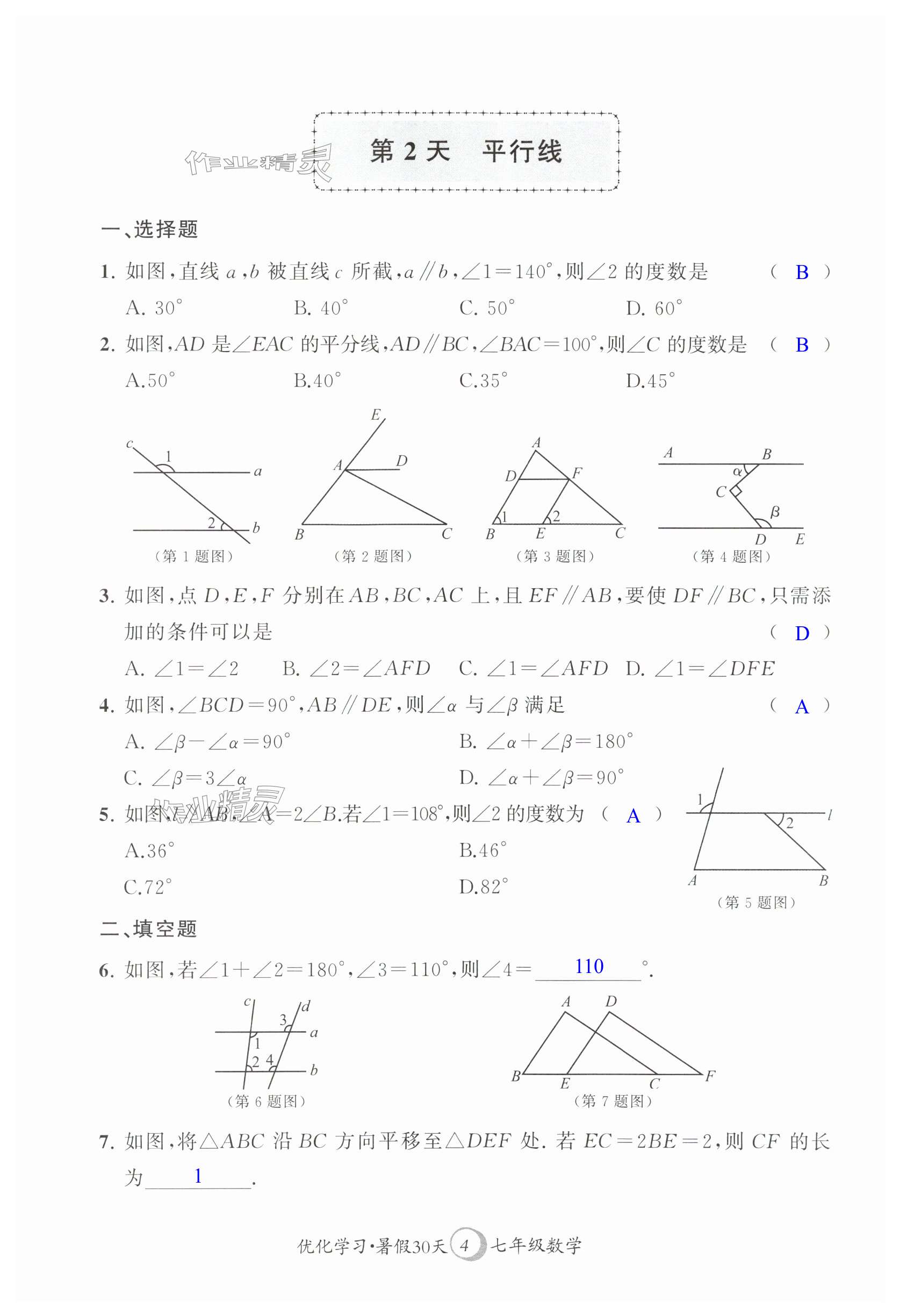 注:目前有些书本章节名称可能整理的还不是很完善,但都是按照顺序排列的,请同学们按照顺序仔细查找。练习册 2025年优化学习暑假30天七年级数学苏科版江苏地区河海大学出版社 答案主要是用来给同学们做完题方便对答案用的,请勿直接抄袭。