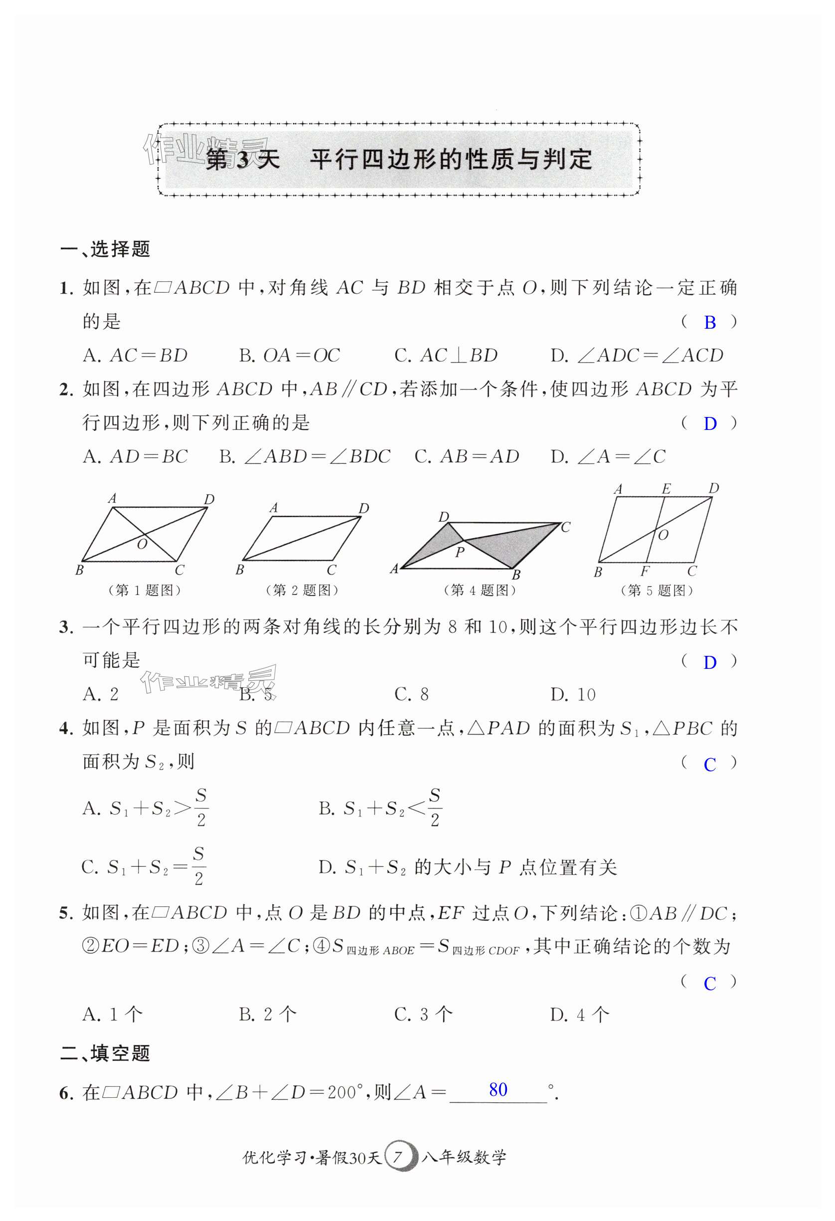 注:目前有些书本章节名称可能整理的还不是很完善,但都是按照顺序排列的,请同学们按照顺序仔细查找。练习册 2025年优化学习暑假30天八年级数学苏科版江苏地区河海大学出版社 答案主要是用来给同学们做完题方便对答案用的,请勿直接抄袭。