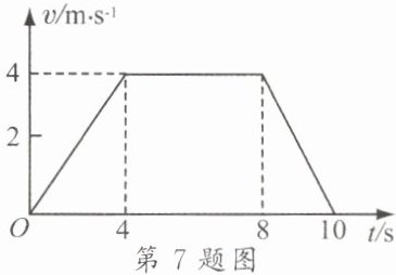 7. 一遥控小电动车在平直的路面上做直线运动,其速度v随时间t变化的图像如图所示.已知在4s~8s内小车受到的牵引力恒为10N,则在4s~8s内小车受到的阻力为