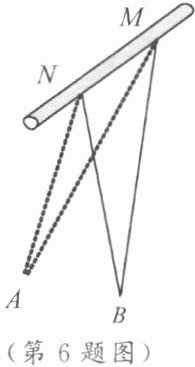 【解析】:木块A静止时,受到竖直向下的重力G=6N、上面橡皮筋竖直向下的拉力F₁和下面橡皮筋竖直向上的拉力F₂=4N。根据平衡条件,竖直方向合力为零,即G + F₁ = F₂,解得F₁ = F₂ - G = 4N - 6N = -2N,负号表示上面橡皮筋的实际拉力方向竖直向上(此处原分析中方向判断有误,应为上面橡皮筋拉力向上,下面橡皮筋拉力向上,重力向下,平衡时F₁ + F₂ = G,即F₁ = G - F₂ = 6N - 4N = 2N,方向竖直向上,修正后更合理)。