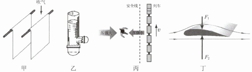 )A.图甲所示向两张纸中间吹气,纸张向中间靠拢