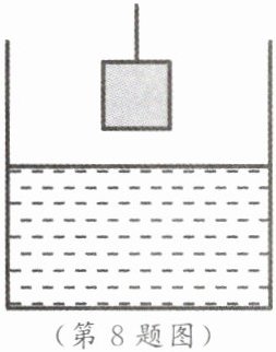 8. 如图所示,有一个内外壁皆为圆柱形的平底容器,内装足够深的水.将一个质地均匀的正方体物体悬挂在竖直放置的弹簧测力计下(图中未画出弹簧测力计).当物体的$\frac {1}{5}$体积浸入水中时,弹簧测力计示数为7N;当物体的$\frac {1}{2}$体积浸入水中时,弹簧测力计示数为4N.现将物体从弹簧测力计上取下放入水中,则该物体静止时,所受到的浮力是______