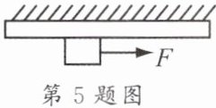 5. 如图所示,重为5N的铁块紧紧吸附在磁性平板的下表面,若用2N的水平力向右拉铁块时,铁块匀速运动,此时平板对铁块的摩擦力大小为