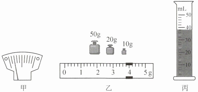 ③向烧杯中倒入适量红酒,放在天平的左盘中,在右盘加减砝码并调节游码,天平平衡时,所用砝码及游码在标尺上的位置如图乙所示,则质量为