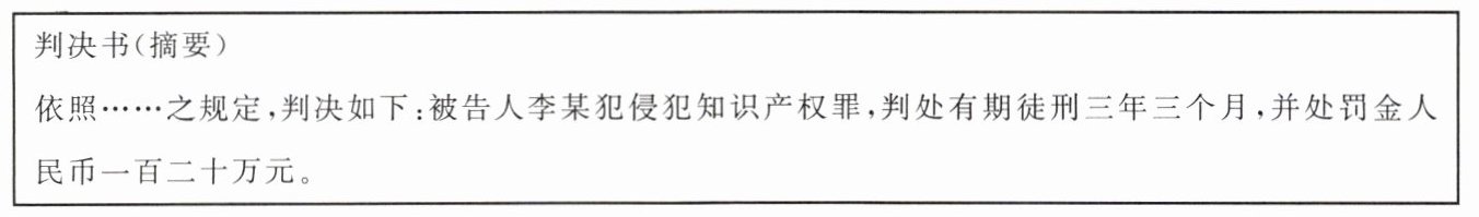 【解析】:根据判决书摘要,被告人李某被判定犯“侵犯知识产权罪”,并被判处“有期徒刑三年三个月”和“罚金人民币一百二十万元”。