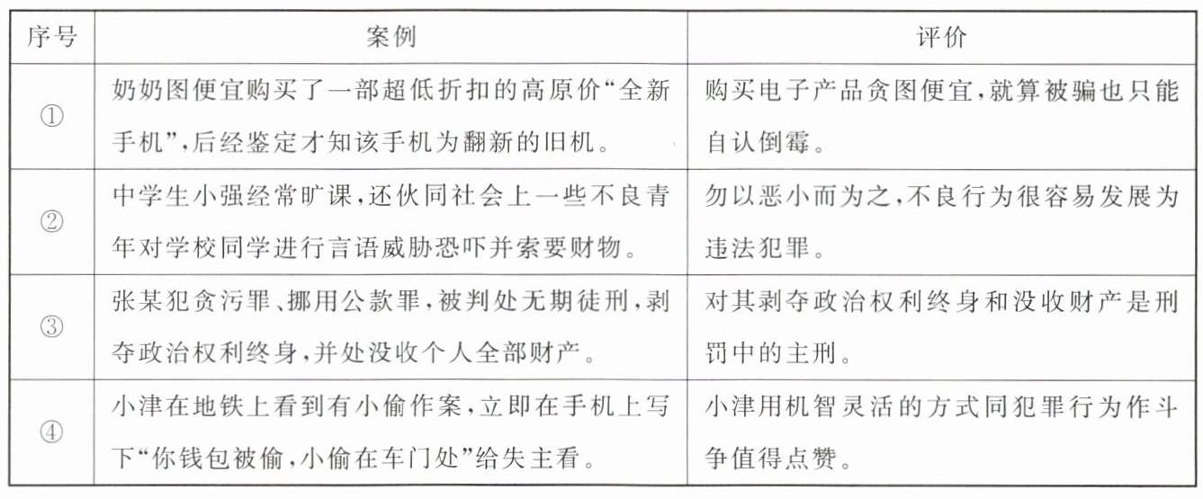 对于④:小津在地铁上看到有小偷作案,立即在手机上写下“你钱包被偷,小偷在车门处”给失主看。小津在确保自身安全的前提下,巧妙地提醒失主,是用机智灵活的方式同犯罪行为作斗争,值得点赞,该评价正确。