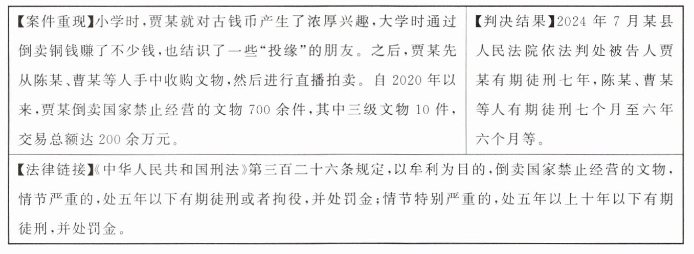 9. 文物承载着灿烂的历史文明,但对文物的爱好及研究需遵守相关法律规定。阅读材料,回答问题。