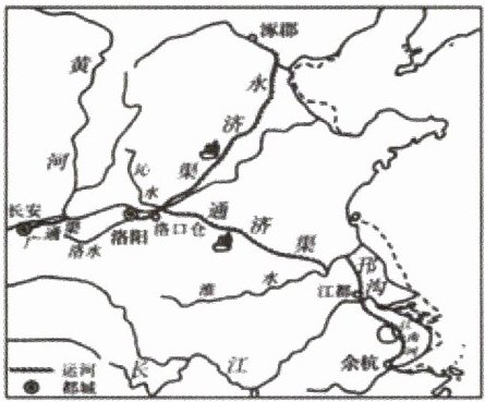 1.隋朝虽短暂,但却给后世留下了很多遗产。如右图所示水利工程的主要作用是 (